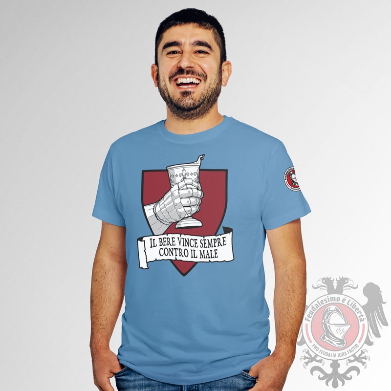 Evil hides behind every corner! And, quite often, it's not defeated by knights, saints or paladins, but rather by true mates who carry a fundamental trait: drinking! Cleansing one's mouth with a tasty and refreshing beer is often more effective than a thousand battles. Printed on a 100% indigo or black cotton fabric. Thanks to the screen printing methods used by our printer monks, this shirt has a high and sharp quality of details. It withstands washings, life adversities and is soft to the touch. Gildan Softstyle 100% Cotton Screen printing Fel Symbol on sleeve